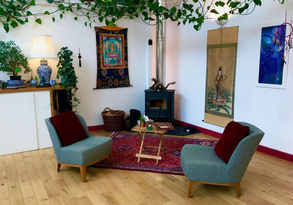 In-person appointments are at Gathering Essence, a beautiful therapy studio in central Edinburgh –